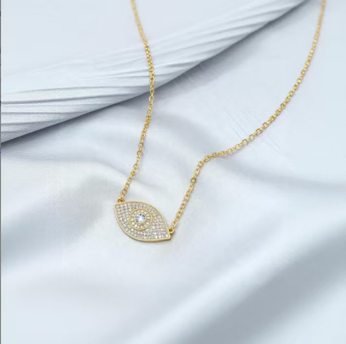 Pave Diamond Evil Eye Gold Necklace